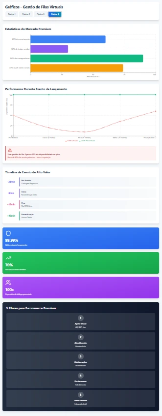 Nossa solução de fila virtual dá controle sobre picos de tráfego que ameaçam travar seu site. Manter visitantes em sala de espera organizada garante que seu sistema opere em melhor desempenho quando é mais importante.